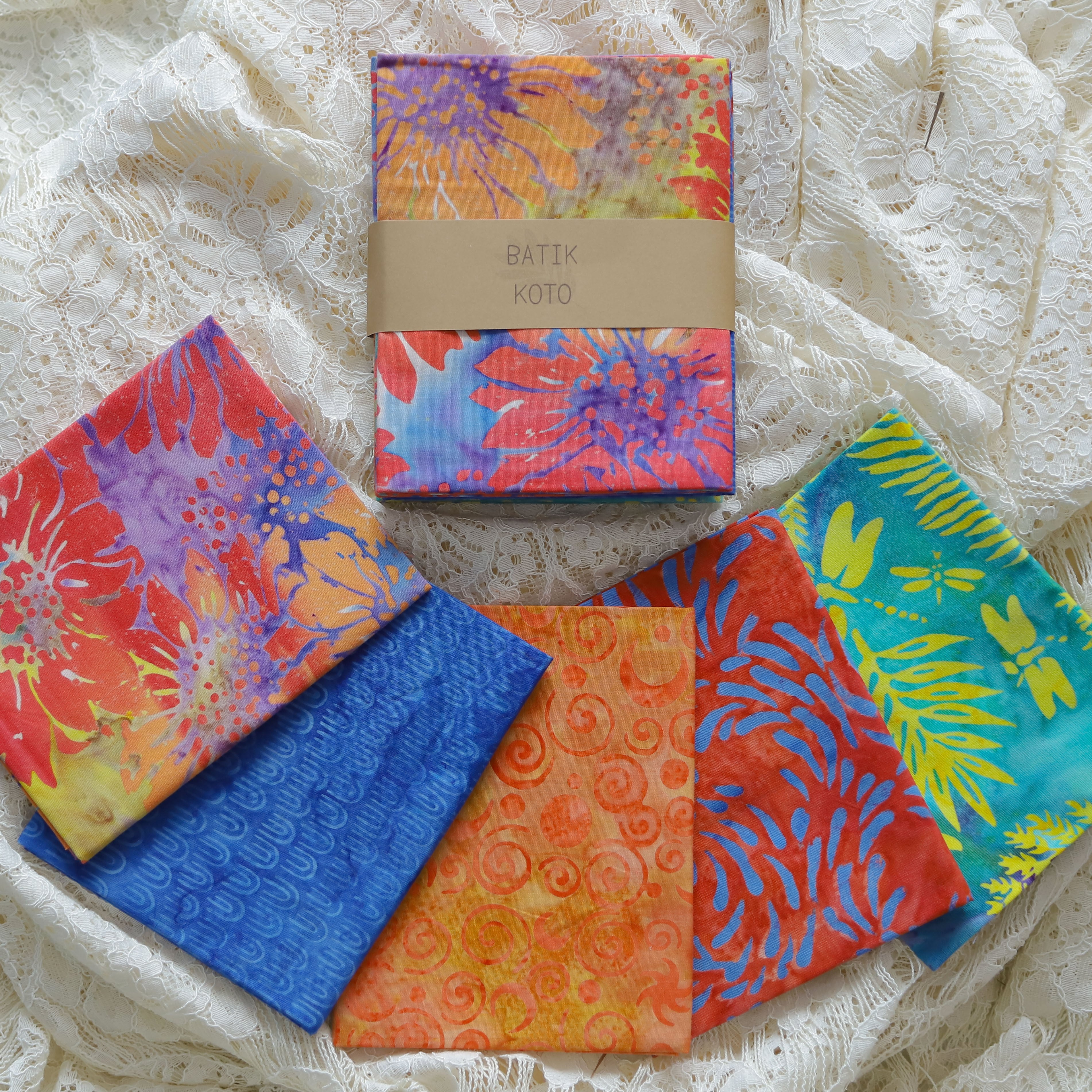 インドネシアのろうけつ染めのバティック生地のカットクロスセットです。
