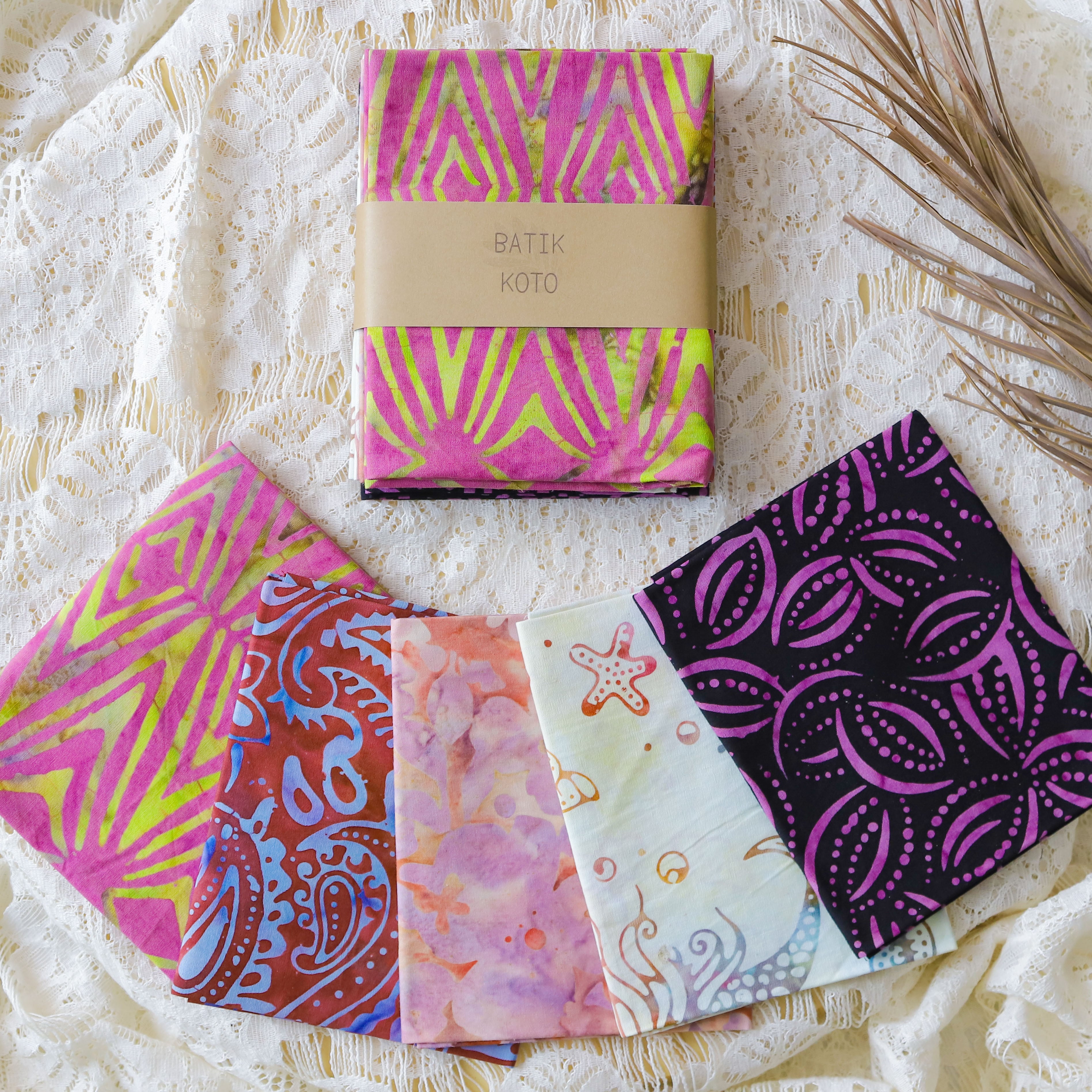 インドネシアのろうけつ染めのバティック生地のカットクロスセットです。